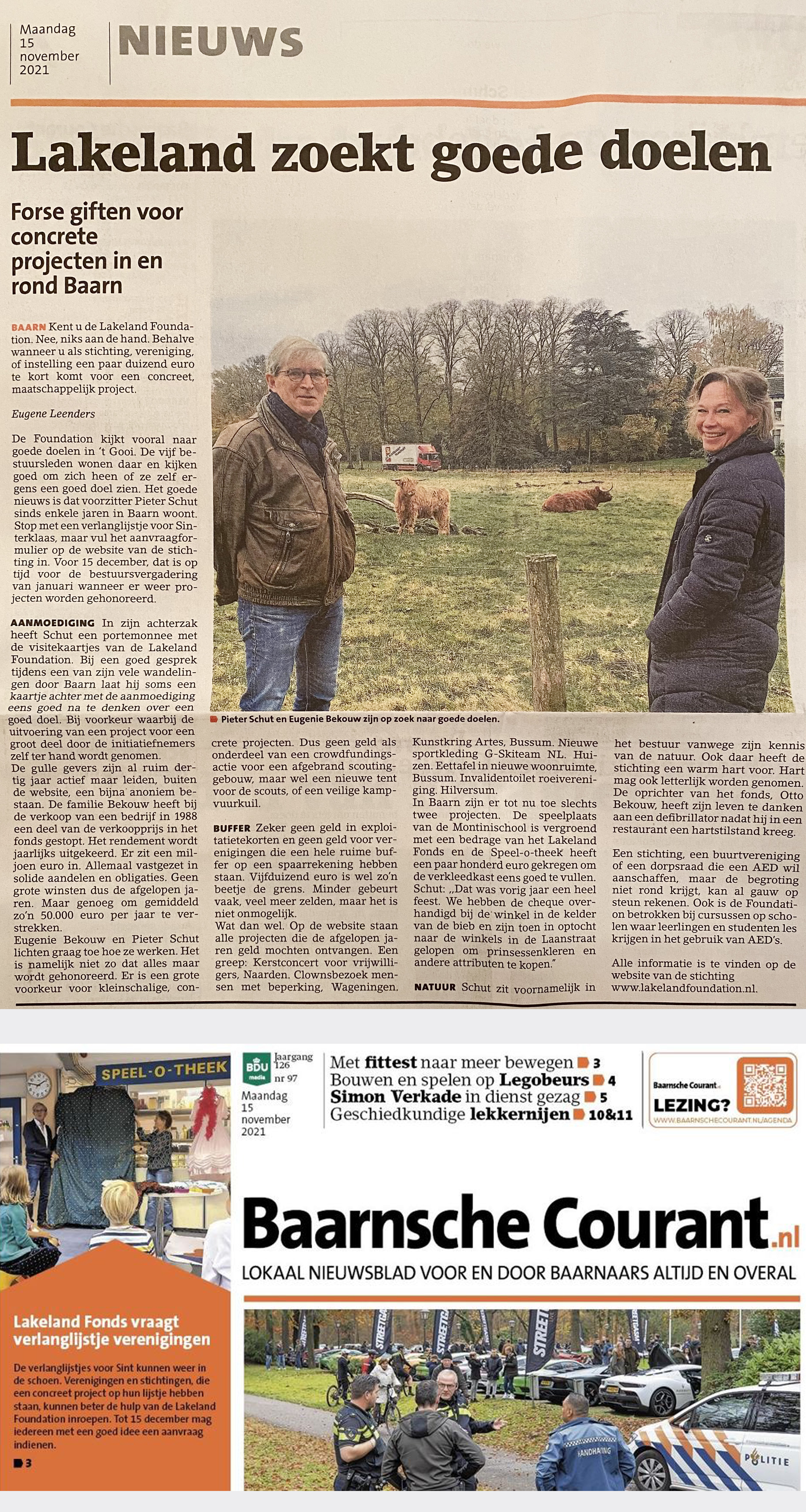 In en rond Baarn: Lakeland Foundation zoekt goede doelen (Artikel
