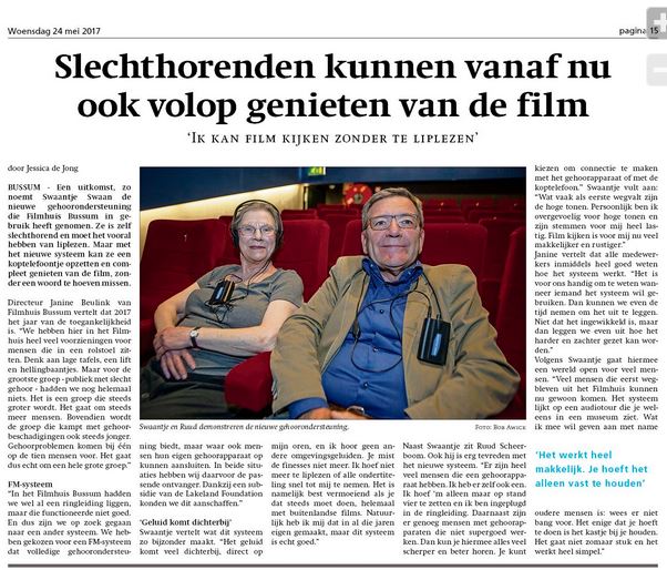 Gift van Lakeland Foundation aan Filmhuis Bussum: Slechthorenden kunnen vanaf nu ook volop genieten van de film