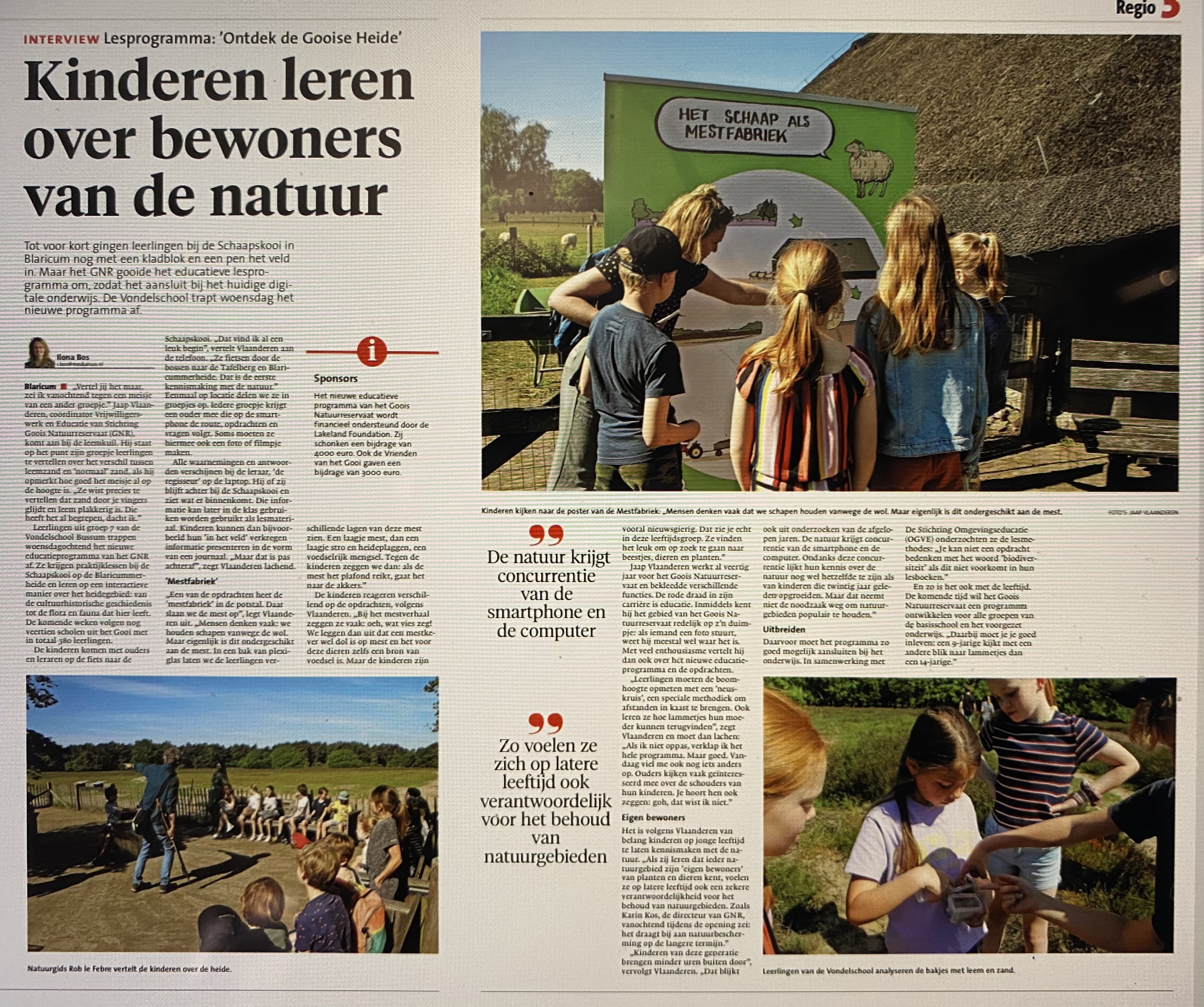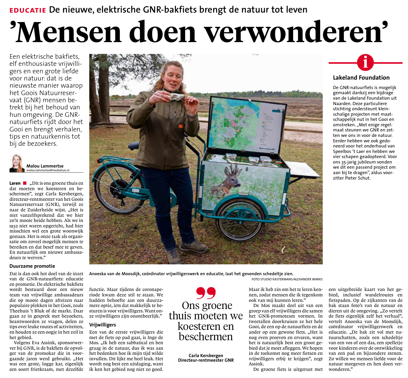Lakeland Foundation steunt GNR: Leerlingen Vondelschool krijgen natuurles (Bussums Nieuws, 3 juni 2021).