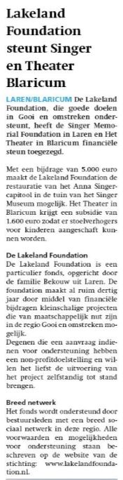 ’t Gooi en omstreken met hulp van de Lakeland Foundation een