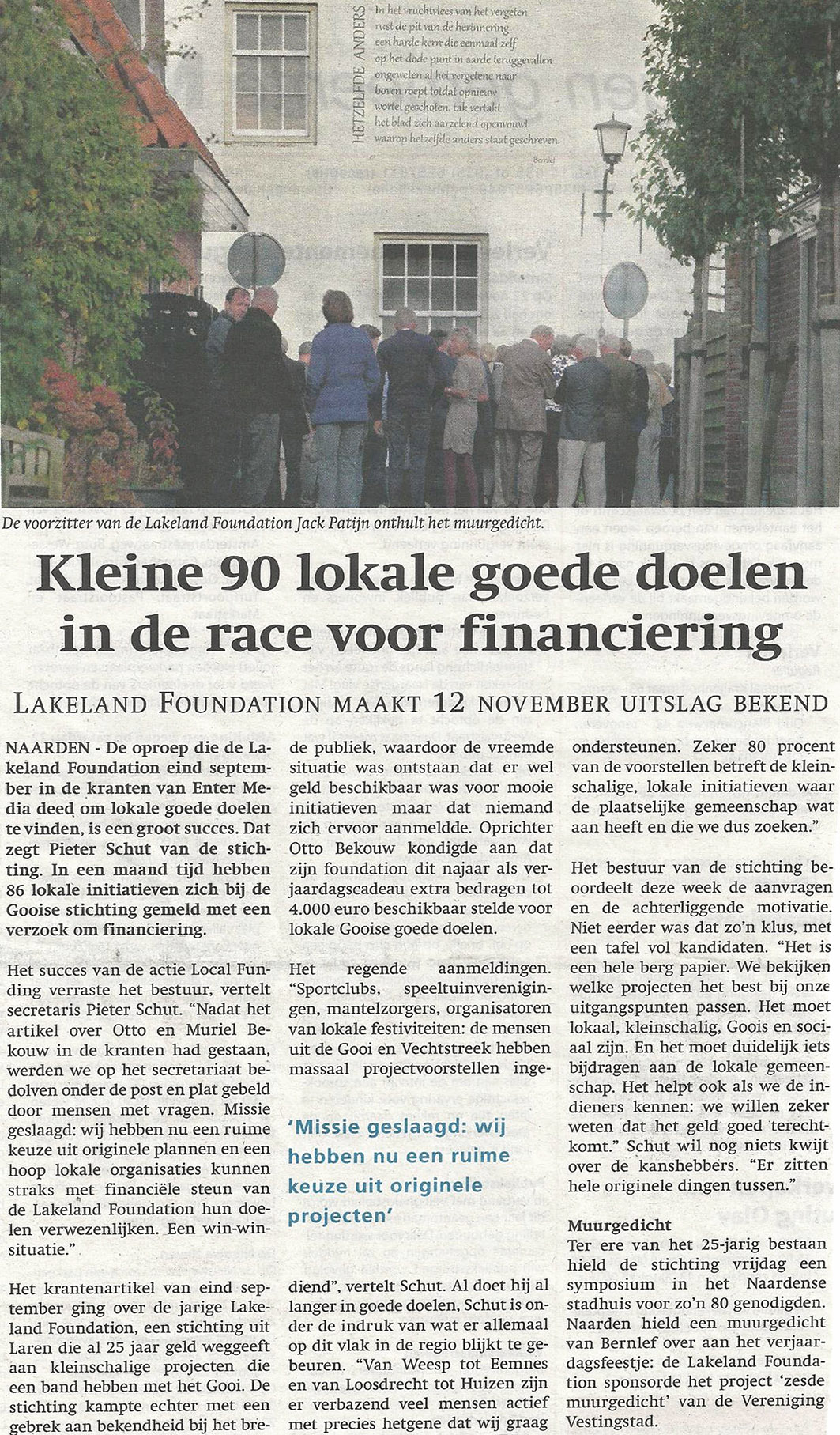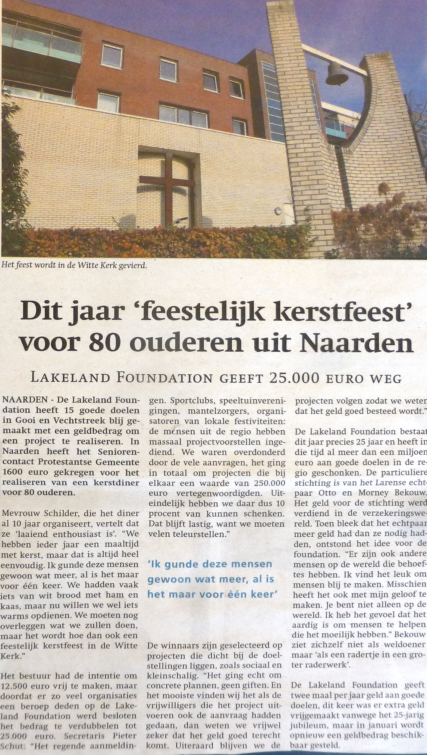 Foundation geeft 25.000 euro weg. (Artikel uit Naarder Nieuws,