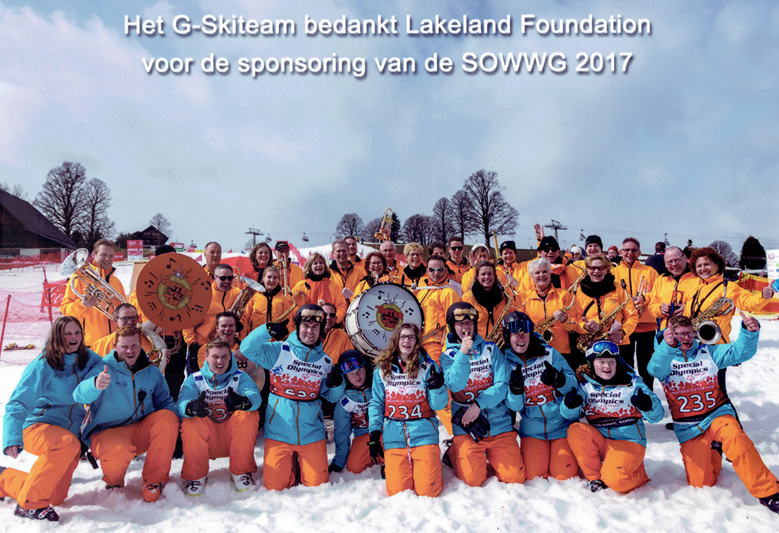 G-Skiteam NL bedankt Lakeland Foundation voor gift nieuwe sportkleding.